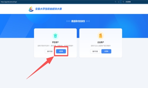 1.报名方式:登录全国大学生职业规划大赛官网:zgs.chsi.com.cn,点击网页上方的【报名入口】,选择【学生用户】,输入学信网账号密码登录。