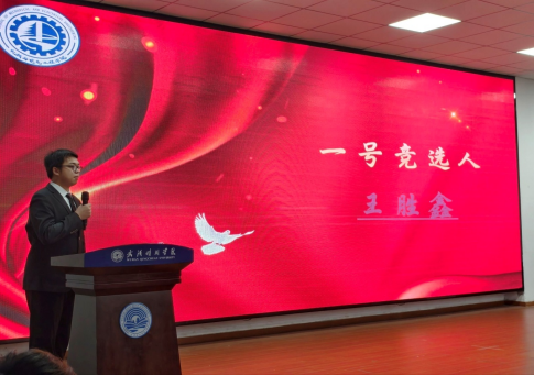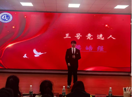 一号竞选人王胜鑫,他从工作经历、竞选优势、科研方面全面的介绍自己。身为共青团员的他“以赤诚之心领航,以实干之资奋进”,他恳切期望能够在接下来的时光中与大家共谱新篇。