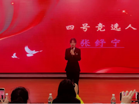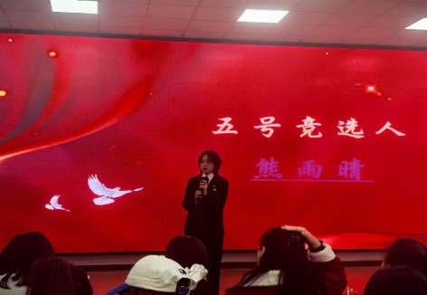 五号竞选人熊雨晴,身为院团总支组织部干事,维持协调学生会正常工作运转。“天下大事,必成于气”是她的座右铭。最后,她以“启航新征程,共创美好未来”作为自己的结束语。