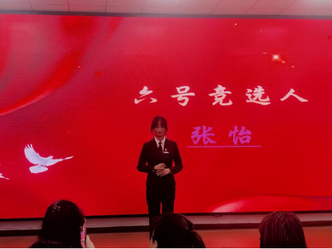 六号竞选人张怡,现任团总支组织部干事,深耕组织工作、善统筹协调,她表示,将以热忱与担当凝聚师生力量,全心服务同学成长,她愿以实干践行承诺,用责任回应信任。