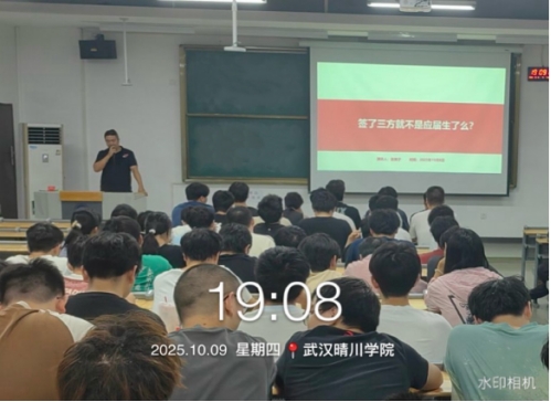 2025年10月9日19:00,2022级电气与机械专业全体学生于教1-308开展“签了三方就不是应届生了么”主题班会,本次班会由辅导员张爽子老师主讲,具体强调以下几个方面的内容: