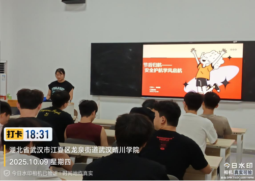 2025年10月9日19:30,辅导员刘洋老师带领2023级电气专业学生于教一107开展了“返校安全·收心上课”主题班会,班会主要围绕以下三个方面展开: