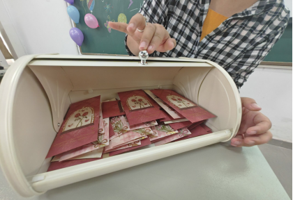 班会还设置了“情绪信箱”与“情绪调色板”互动环节。同学们将近期的焦虑与困惑匿名投入辅导员刘洋老师的“情绪信箱”中,并抽取其他同学的应对方法作为参考。最后,大家还使用彩色便利贴完成了“情绪调色板”,共同拼出班级的“情绪地图”。