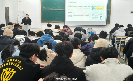 2025年12月7日18:00,2025级机械、机电、机器人专业在教1-205开展了第十五期主题班会。本次班会由辅导员谌文韬老师主讲。本次班会主要从以下三个方面展开: